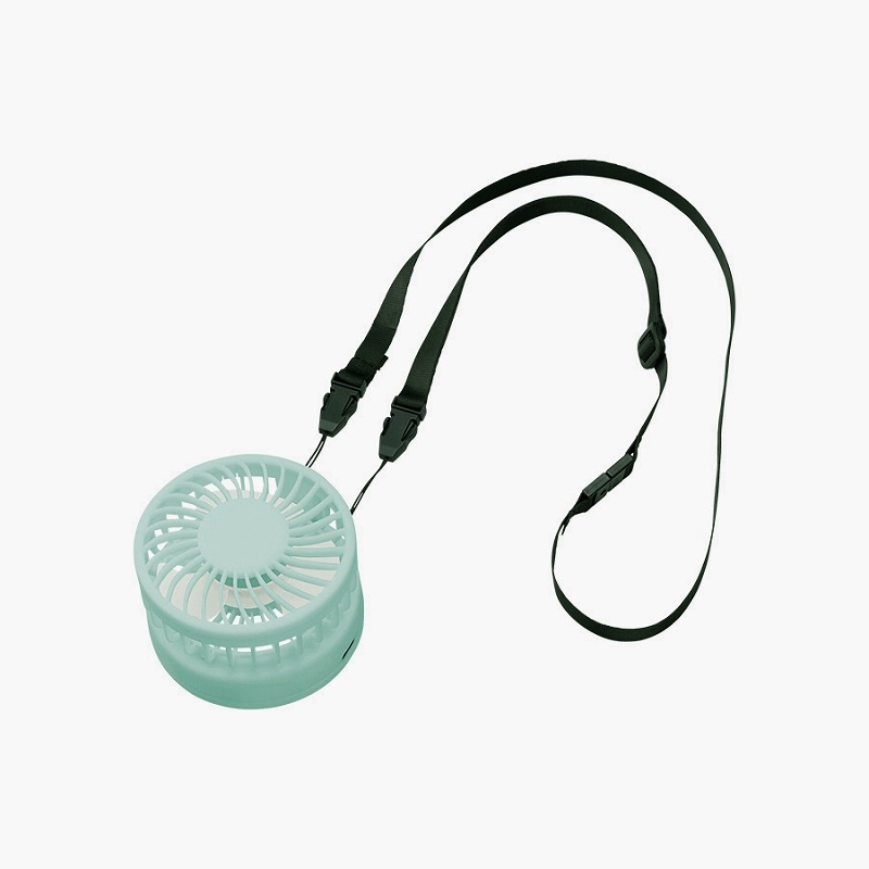 付属のネックストラップをつければ首掛けができるハンズフリーファンに、